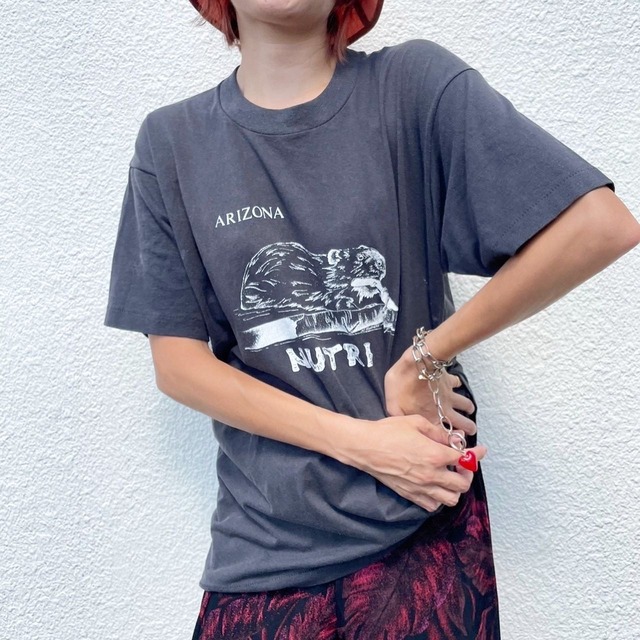 <Brand> <Material> cotton <Size> 着丈:72cm 身幅:55cm 肩幅:49.5cm アームホール:24.5cm 袖丈:19.5cm 裾幅:55.5cm 着用モデル 163cm ※平置きにて採寸しております。 多少の誤差はご了承くださいませ。 _____________________________________________ 【Condition】 ・プリントのひび割れ (usedらしいプリントの見え方です) _____________________________________________ 【返品交換について】 当店はヴィンテージの一点物を扱っておりますので返品交換は出来かねます。 ヴィンテージに慣れた方、ヴィンテージにご理解のある方向けのアイテムです。 【配送について】 ご注文の商品はヤマト運輸にて発送させていただきます。お届けのご希望日時がございましたらお申し付けくださいませ。 送料につきましては一律800円となります。