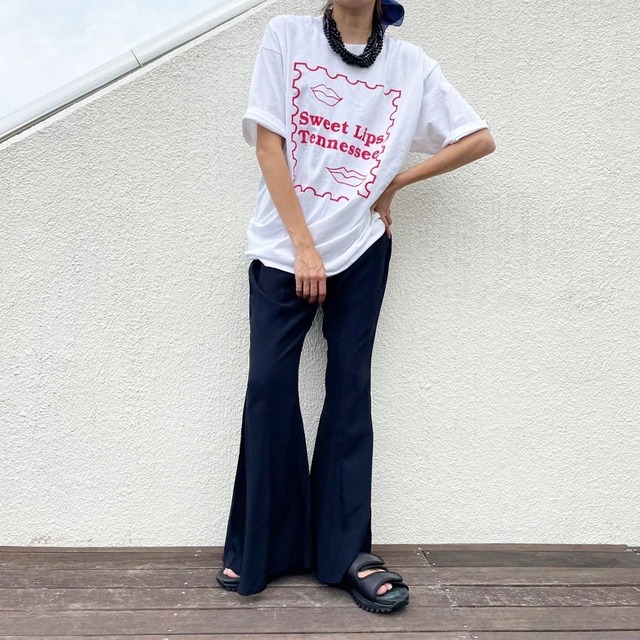 <Brand> <Material> cotton:50% polyester:50% <Size> 身幅 : 59cm 着丈 : 73cm 肩幅 : 53cm 袖丈 : 23cm 着用モデル 163cm ※平置きにて採寸しております。 多少の誤差はご了承くださいませ。 ________________________________________ アメリカ製の80年代のヘインズボディ。 国テネシー州の法人化されていないコミュニティ、Sweet Lips。 この名前、"小川からの水を「唇に甘い」と宣言した入植者に由来する"、らしいです。 アメリカ製 ________________________________________ 【返品交換について】 当店はヴィンテージの一点物を扱っておりますので返品交換は出来かねます。 ヴィンテージに慣れた方、ヴィンテージにご理解のある方向けのアイテムです。 【配送について】 ご注文の商品はヤマト運輸にて発送させていただきます。お届けのご希望日時がございましたらお申し付けくださいませ。 送料につきましては一律800円となります。