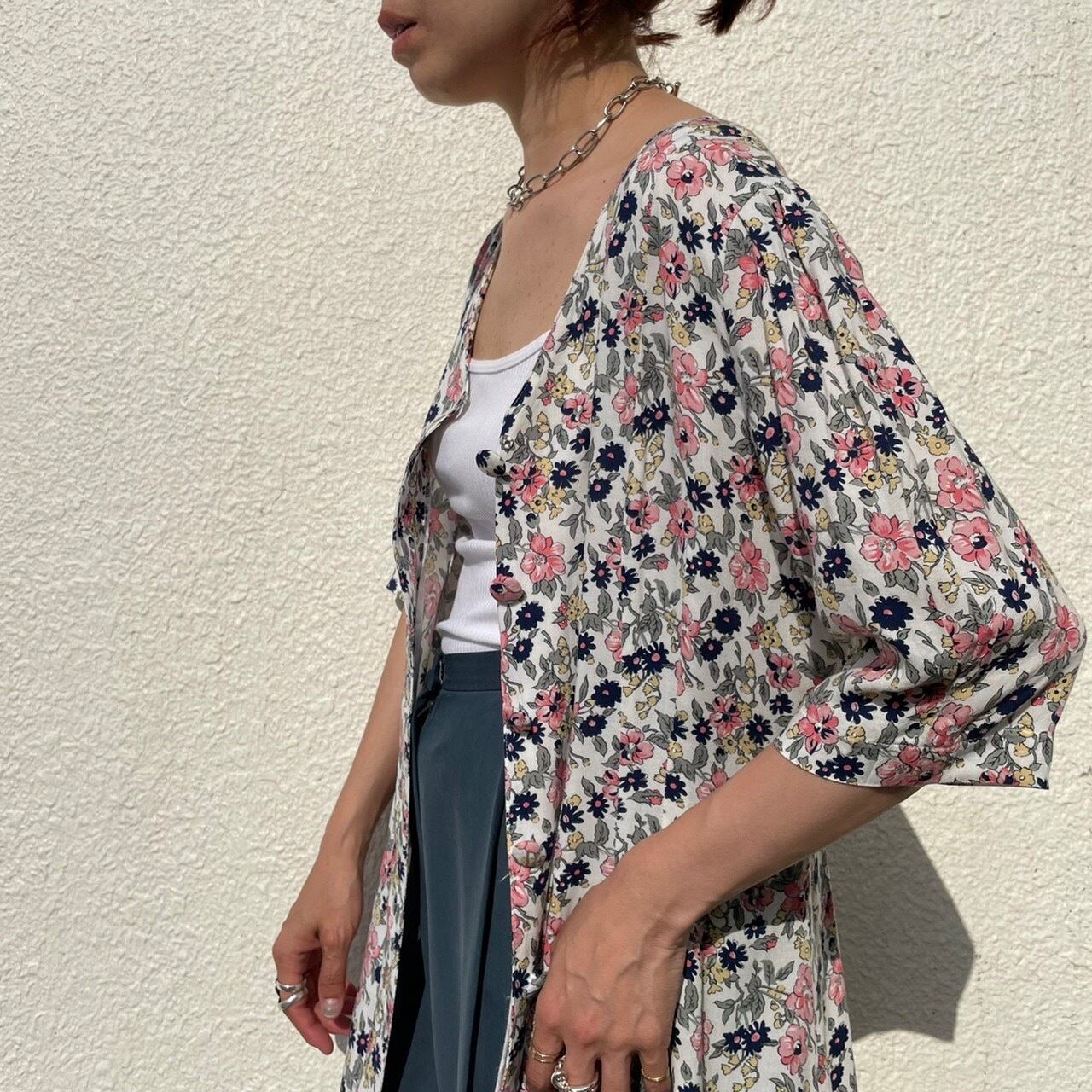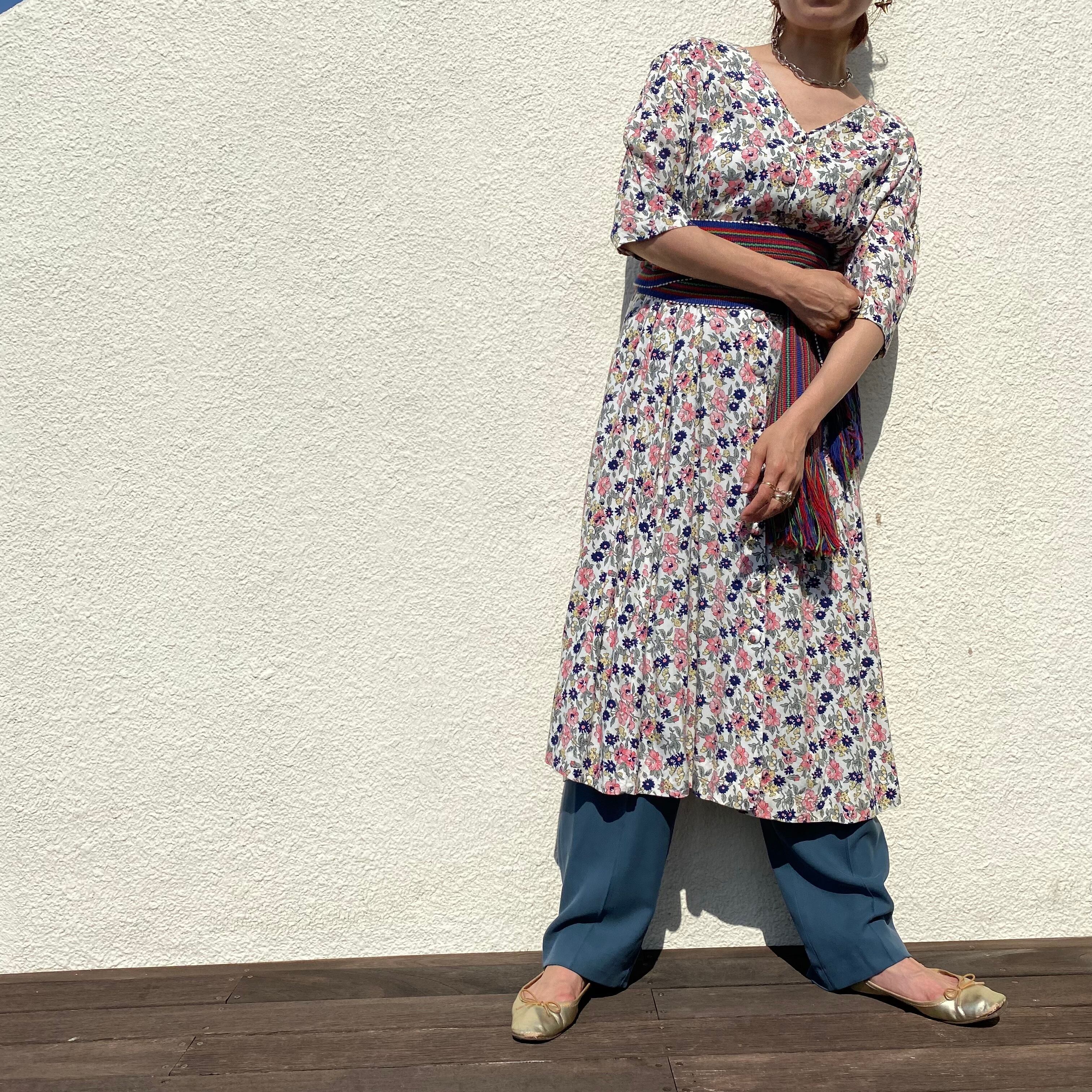 柔らかな色味の花模様が上品でクラシカルな雰囲気がスタイリングの主役になれるワンピース。
