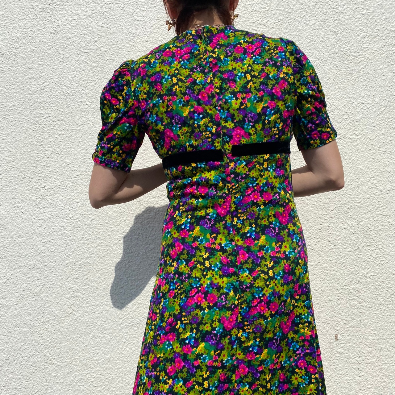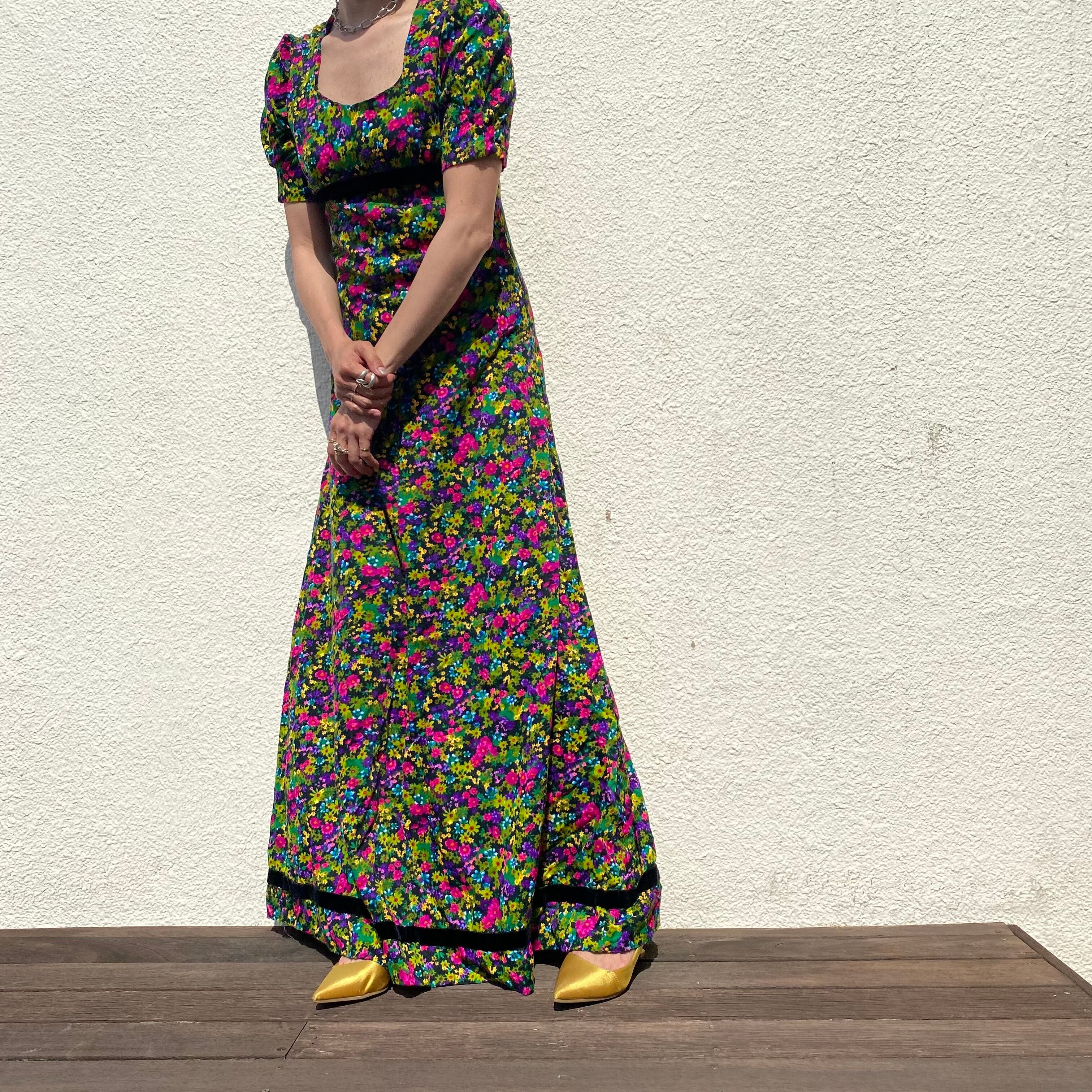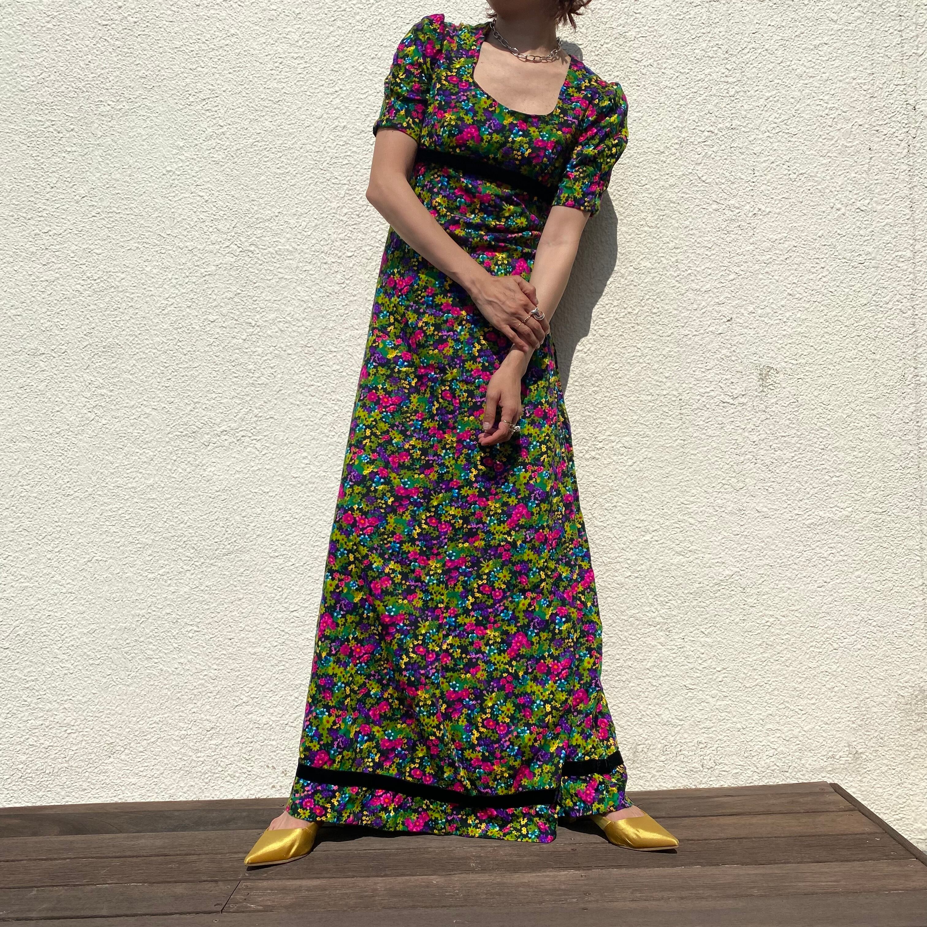70sならではのフローラルパターンドレス。