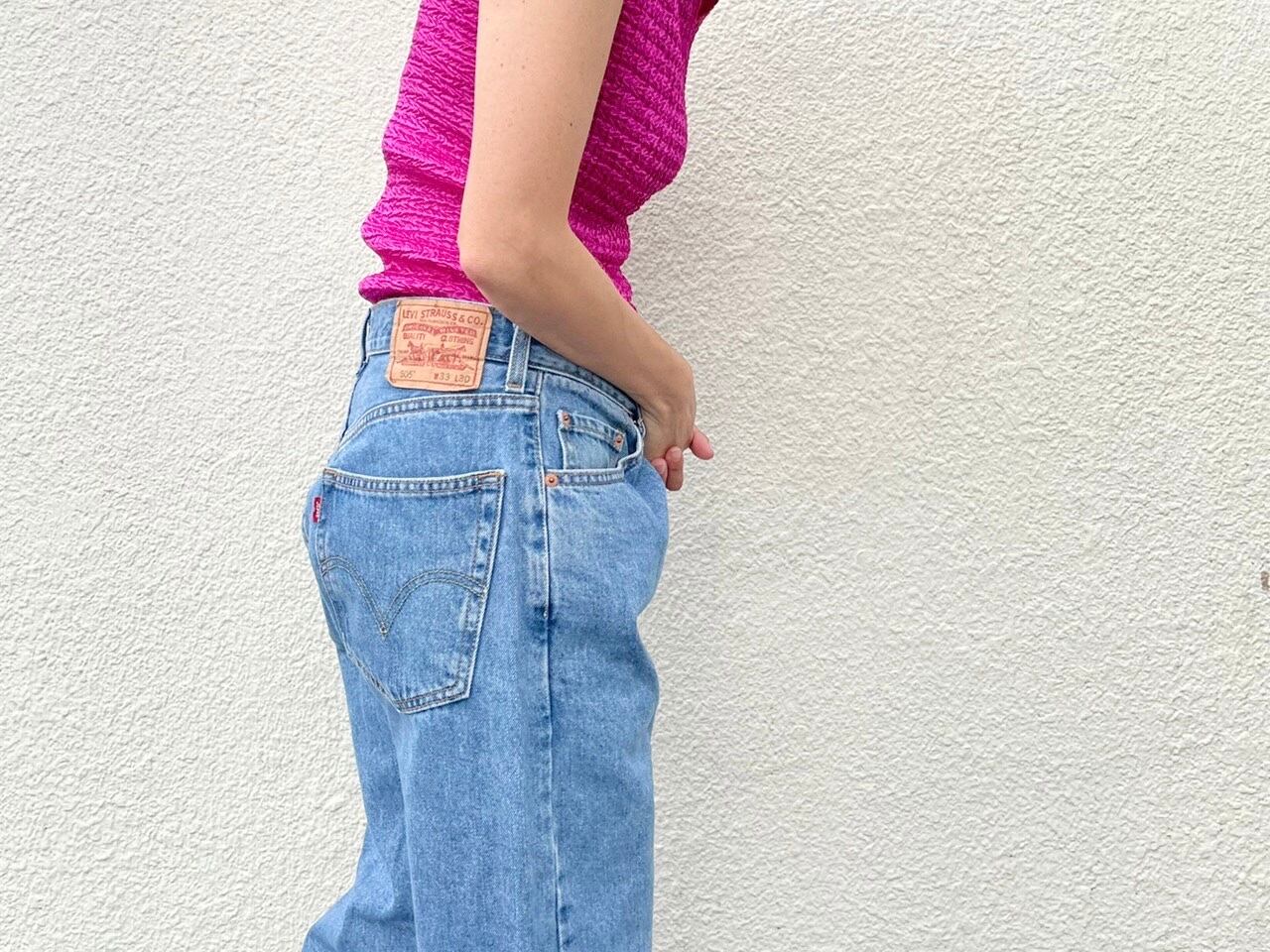 ウエストが大きいのでハイウエスト位置でスタイリッシュに着用しても素敵です。