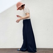 ドレープ感あるパンツのシルエットとの相性がとても素敵です。