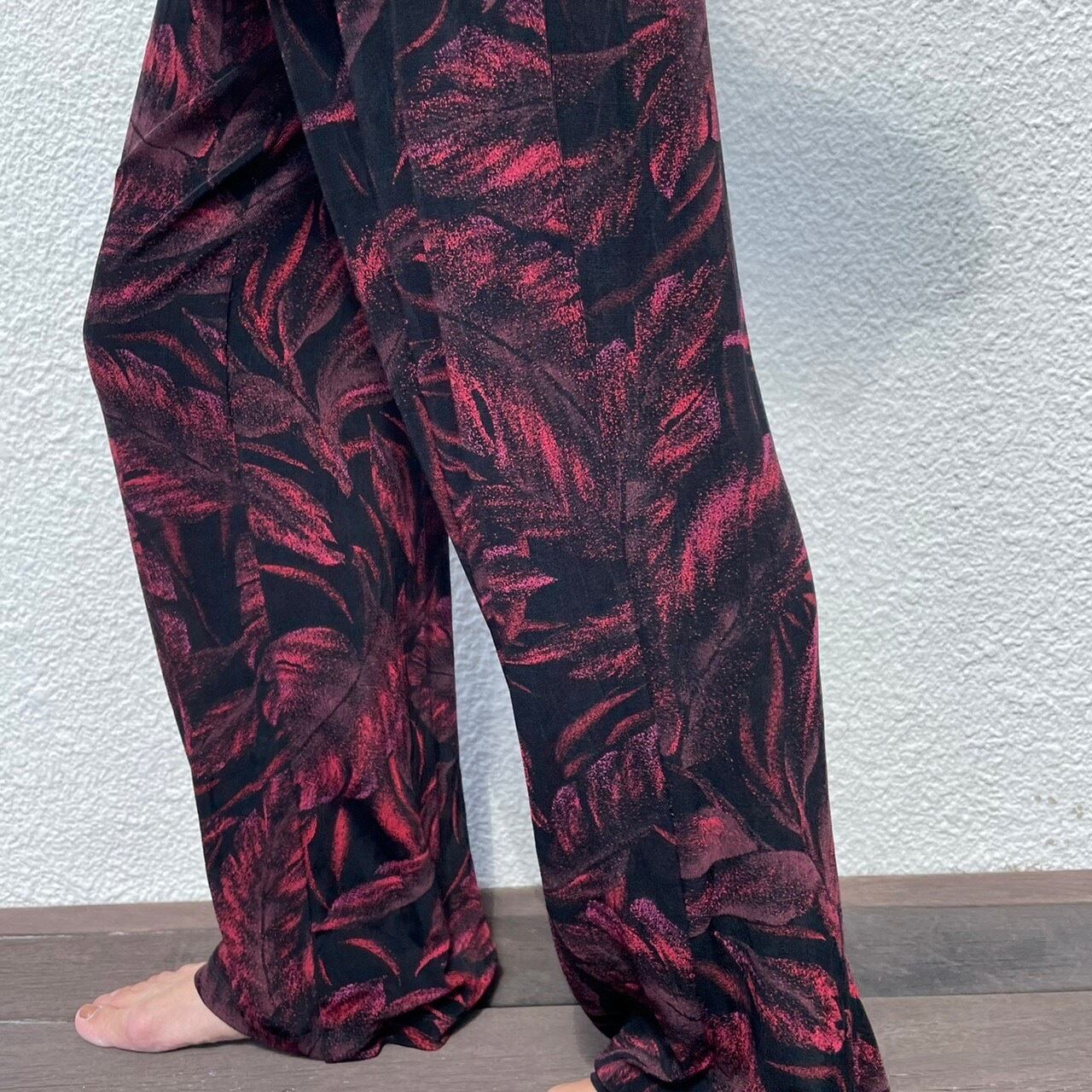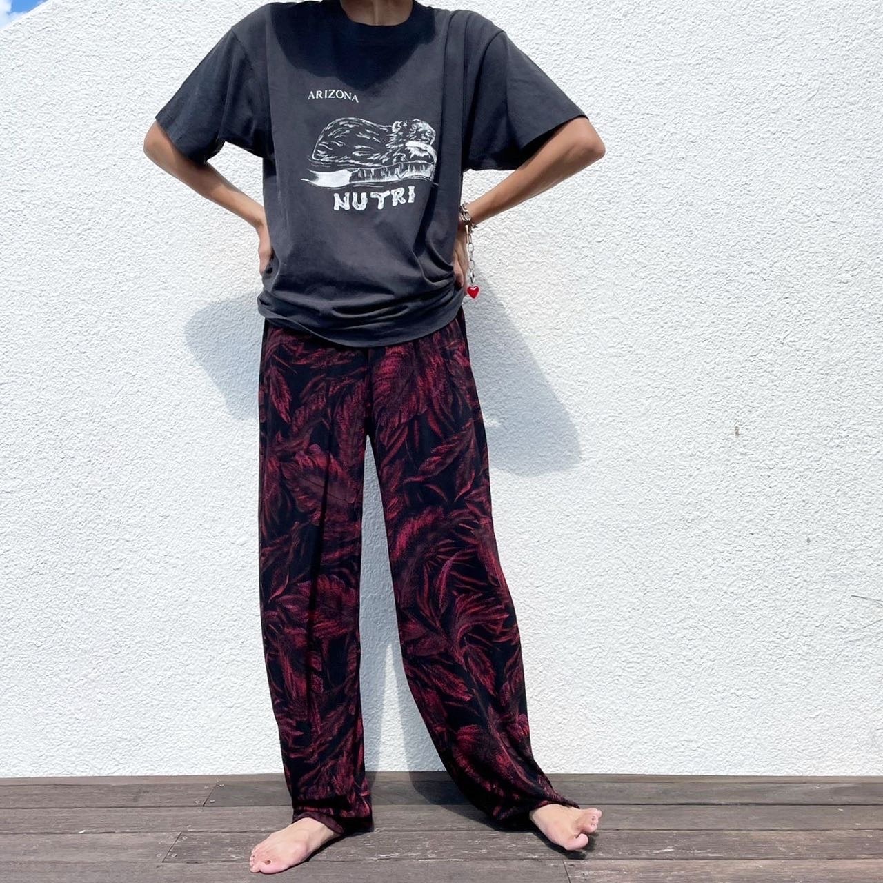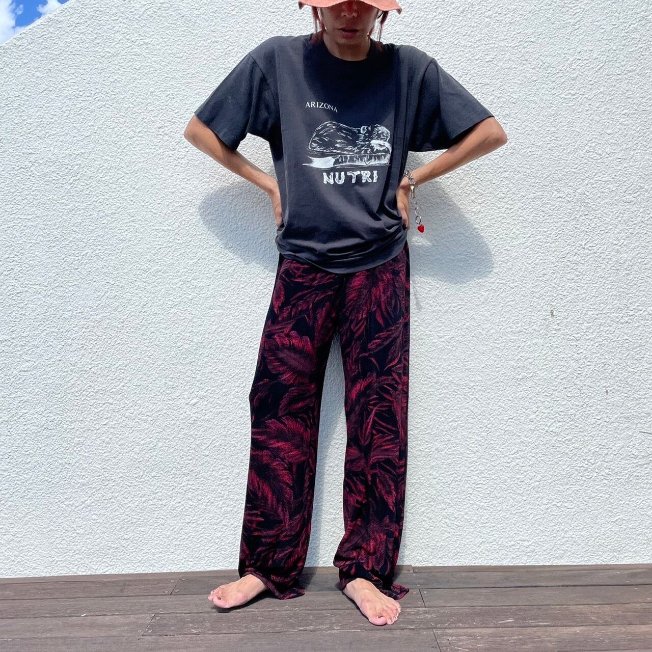 葉のシルエットが浮かび上がるプリントが雰囲気満点のカットイージーパンツ。