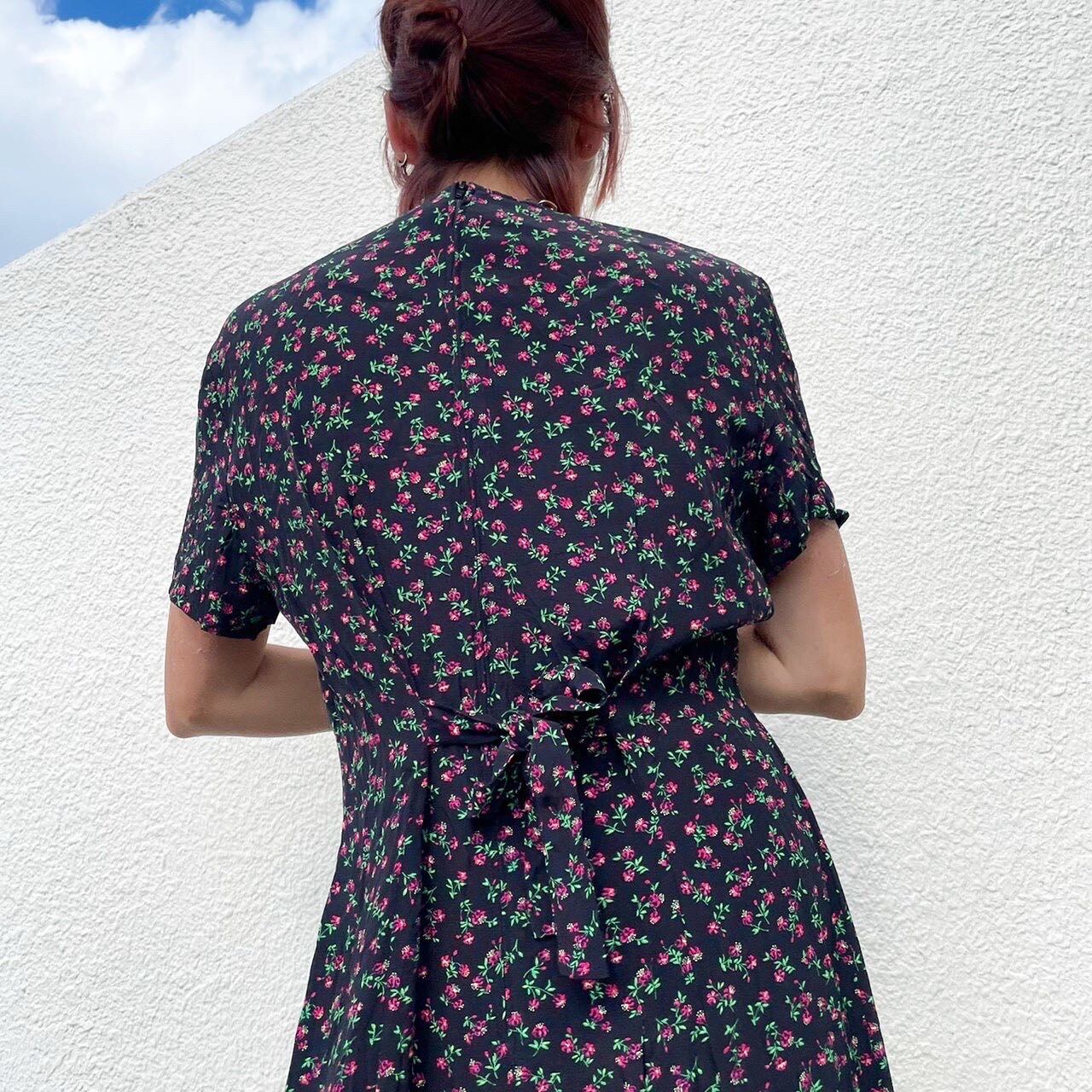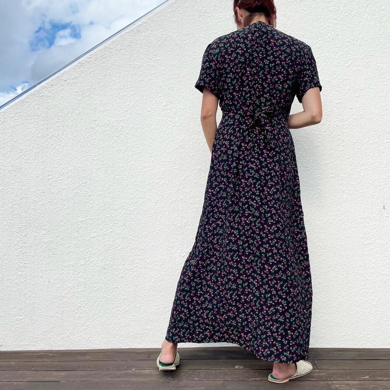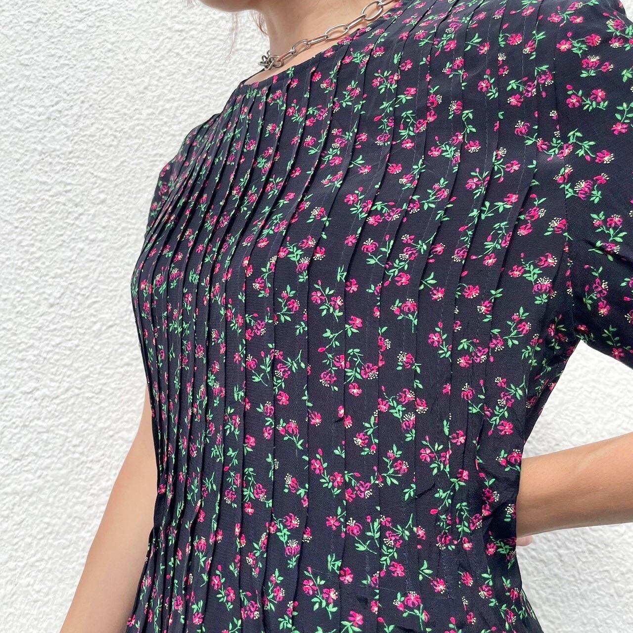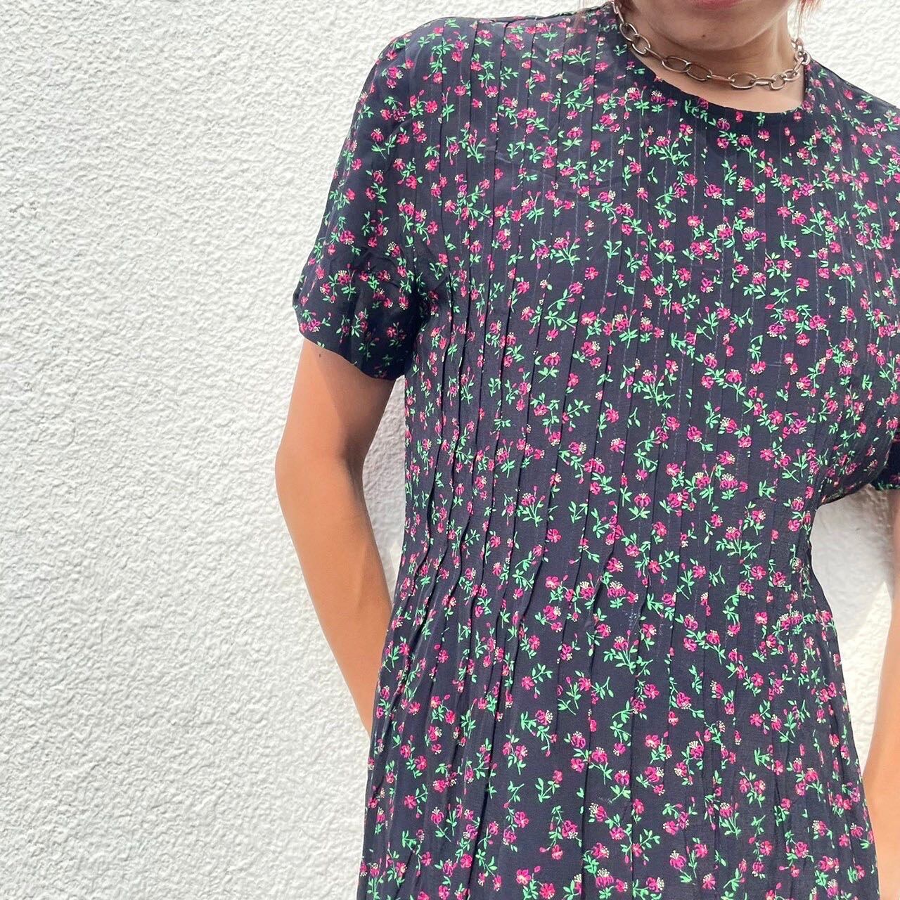 ミニミニなピンク色のお花模様がとても印象的なワンピース。