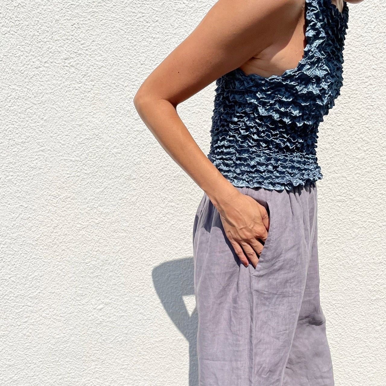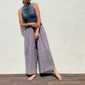 リネン素材のハリ感と爽やかさを兼ね備えた生地が魅力なパンツ。