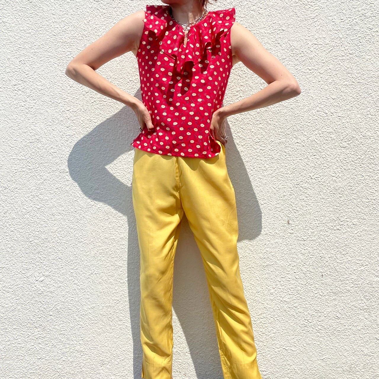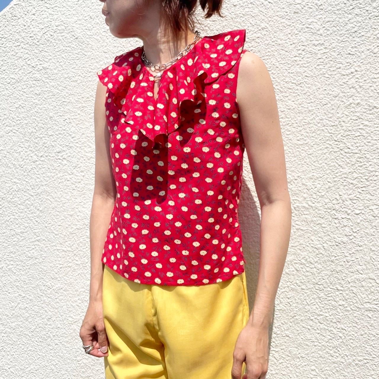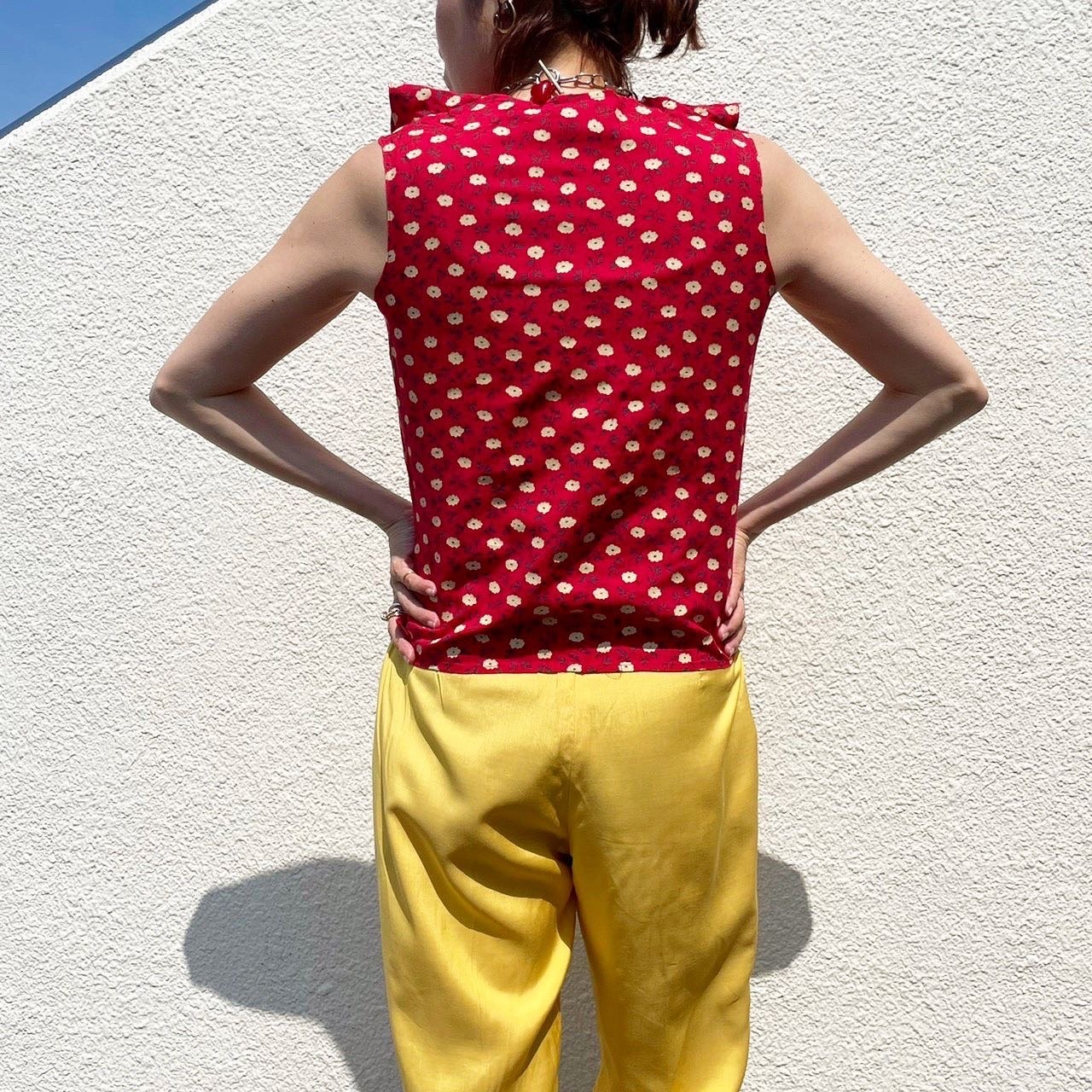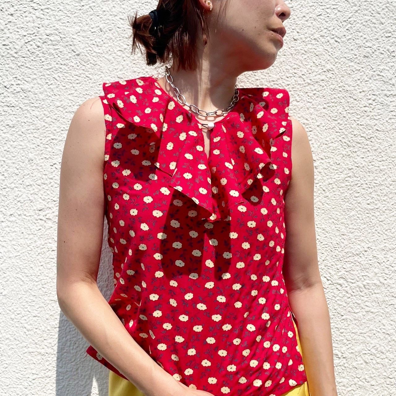 上品なレーヨン素材にぷちっとフラワー柄がプリントされています。USAならではのラフなタッチがなんとも可愛いです。