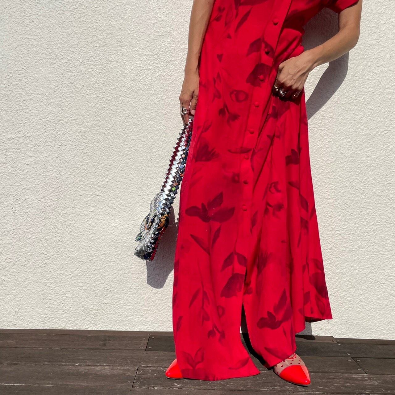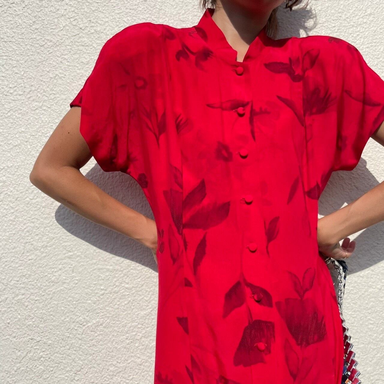 classicな水彩フラワーが散りばめられたマオカラーシャツワンピース。
