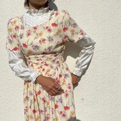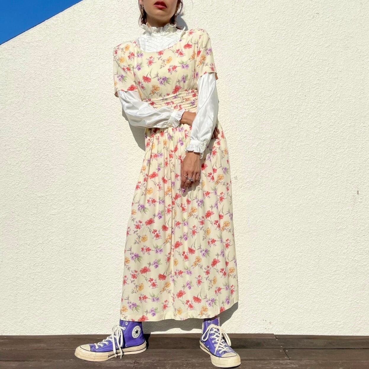 柔らかなクリーム色のベースにフラワー柄プリント。