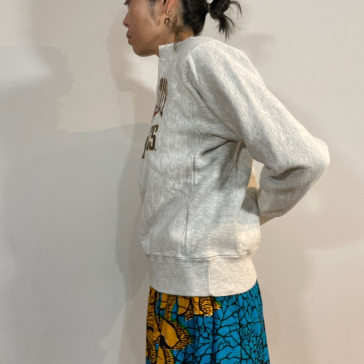 ヌケ感ありつつ現代のスタイリングに馴染みやすいsweat。