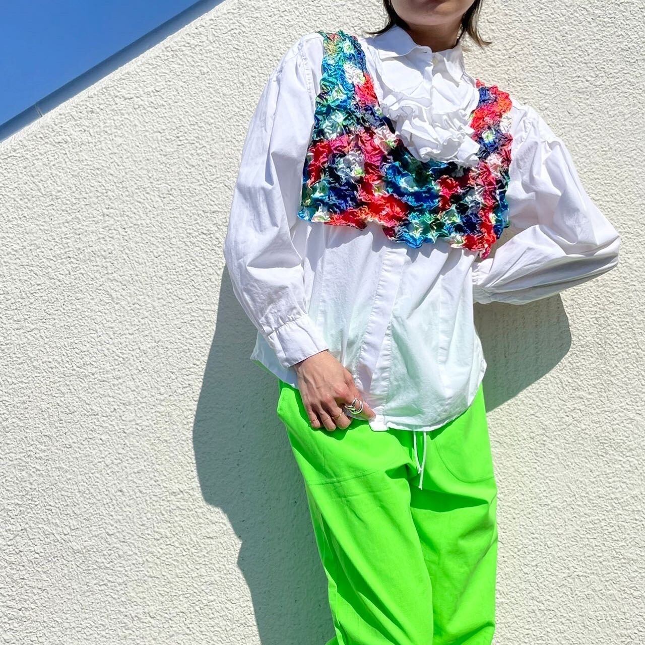 プリントT shirtなどに合わせたりシンプルtopsに合わせたりとレイヤードスタイルをふらりと楽しむ事ができますz