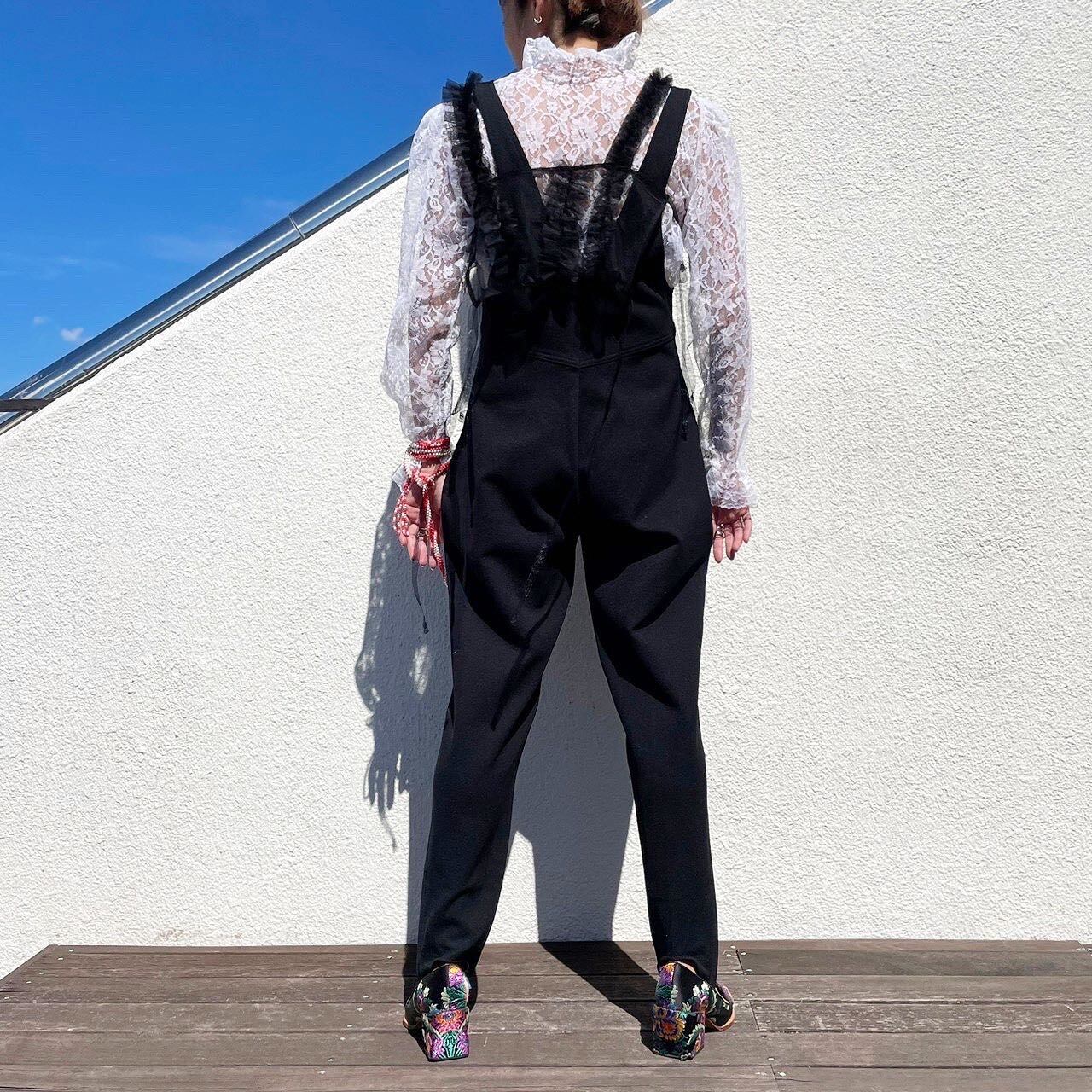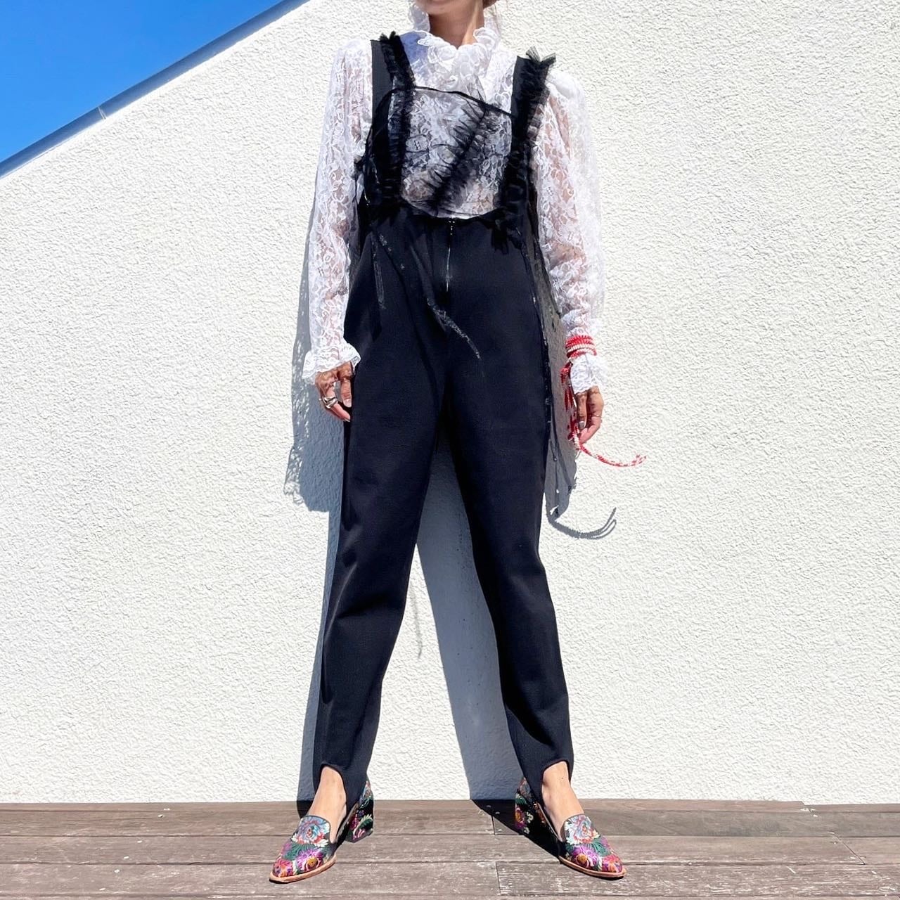 おそらくスキーウェアのインナーとして着用していたサロペット。