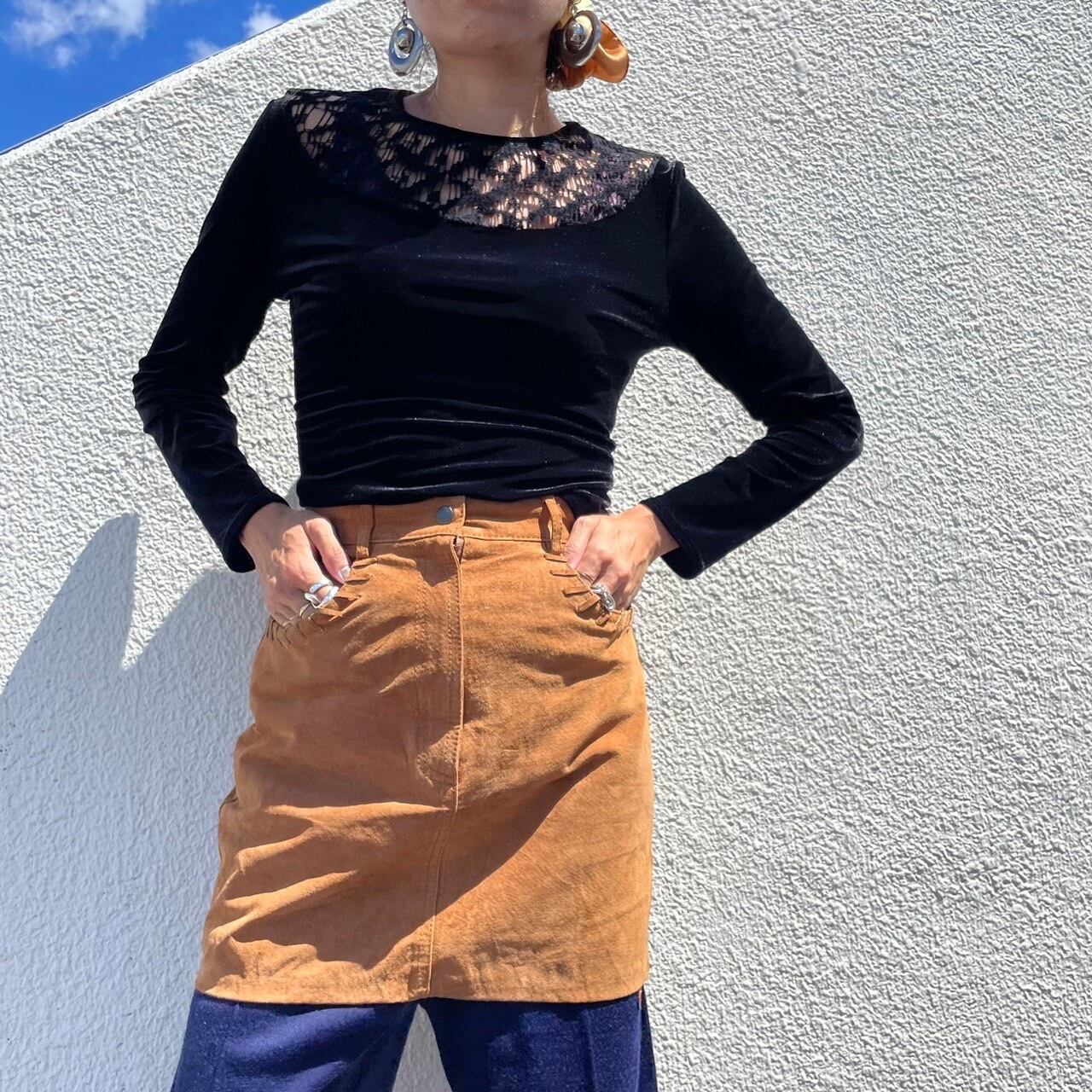 リアルスエード素材の上品さがスタイリング全体をさりげなく魅了してくれる一品です。